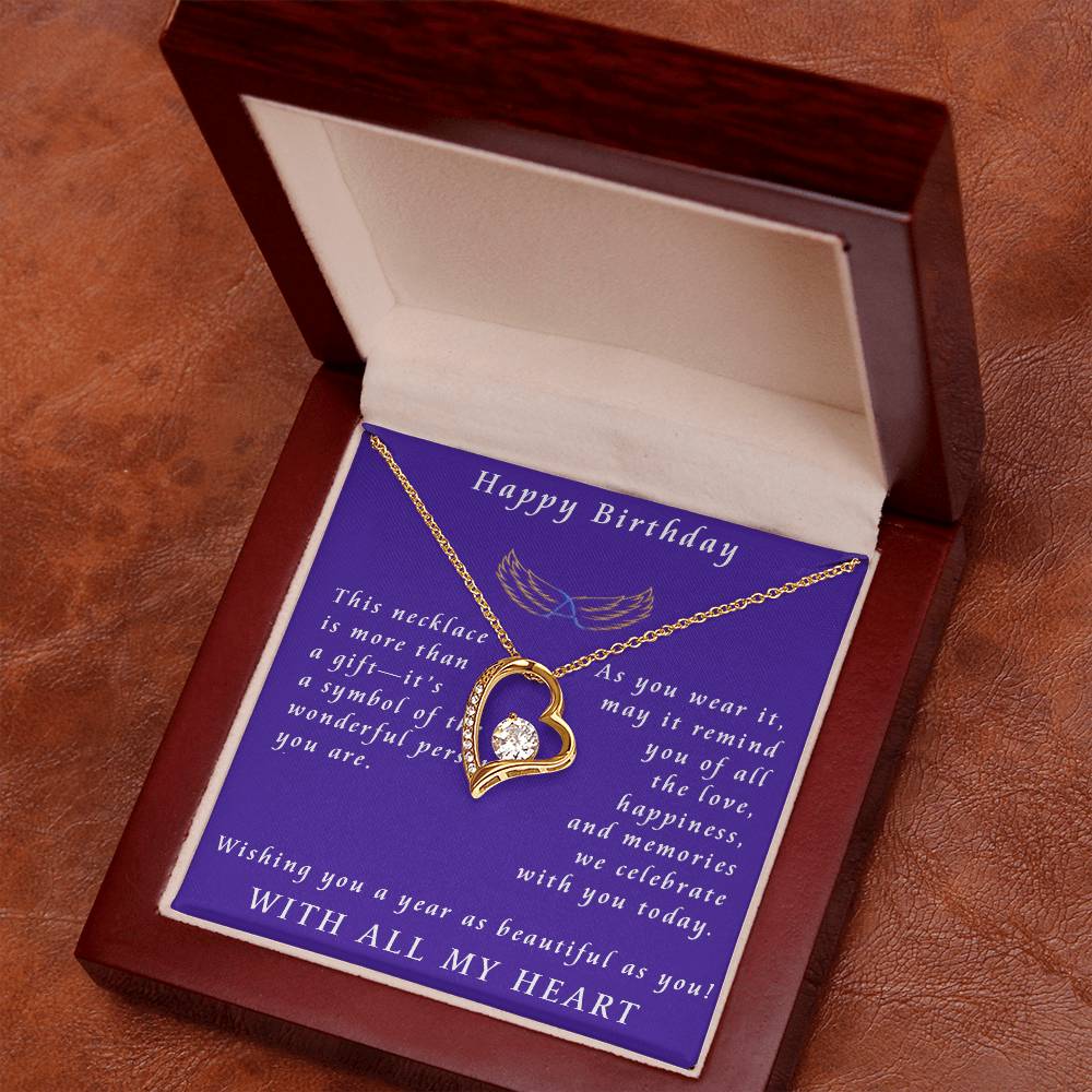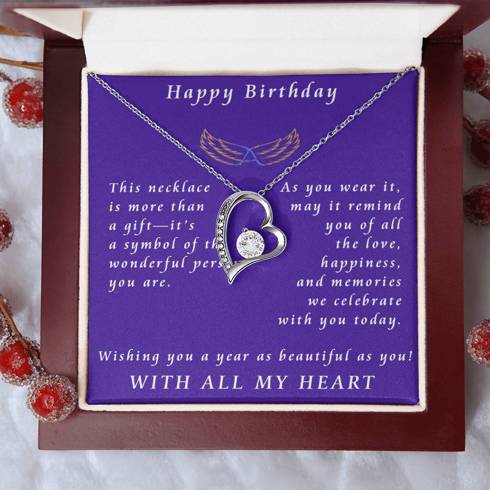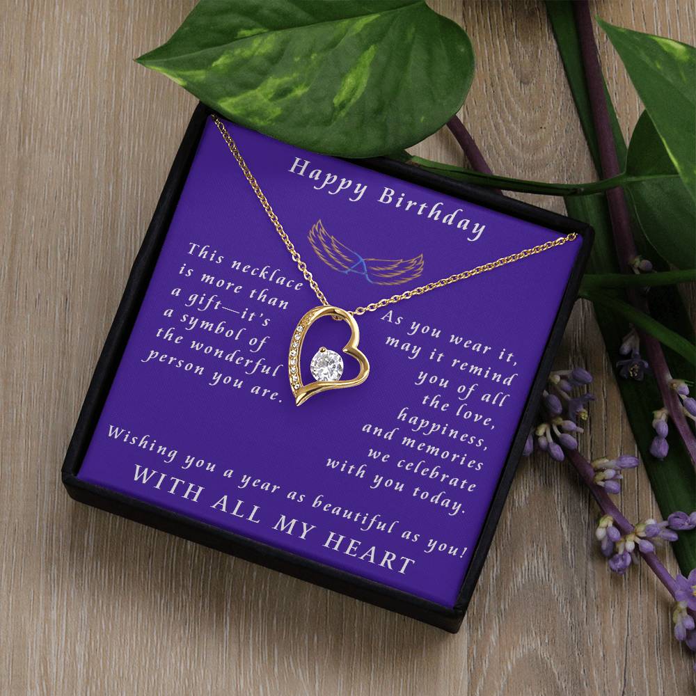 Celebrate a special birthday with the Forever Love Necklace—a heartfelt symbol of love, cherished memories, and meaningful connections. This elegant heart-shaped pendant, adorned with a sparkling center stone, captures the essence of life’s most beautiful moments and the bonds we hold dear. 💖