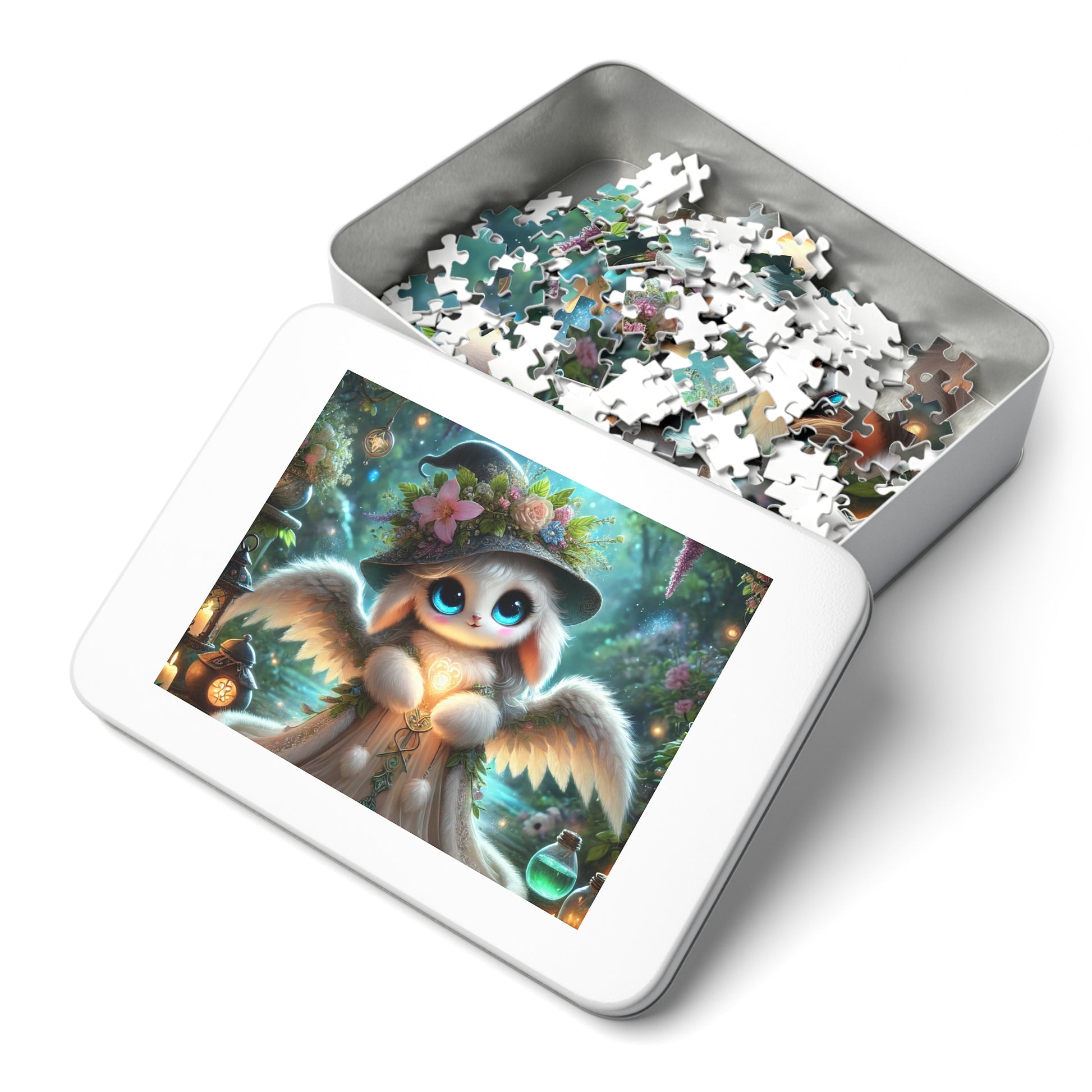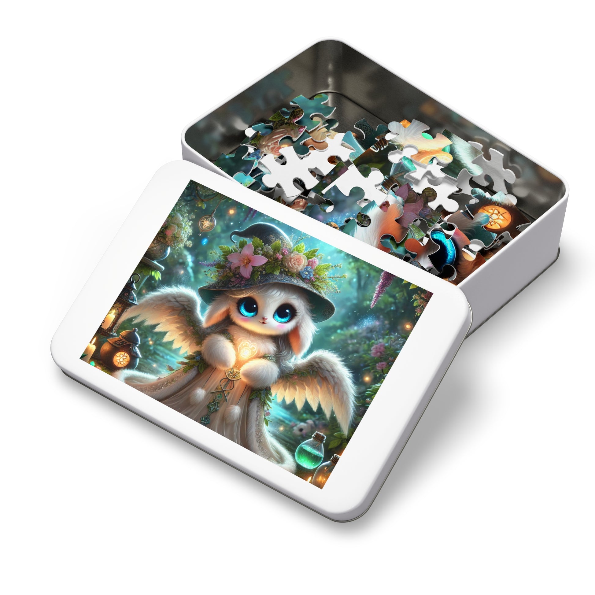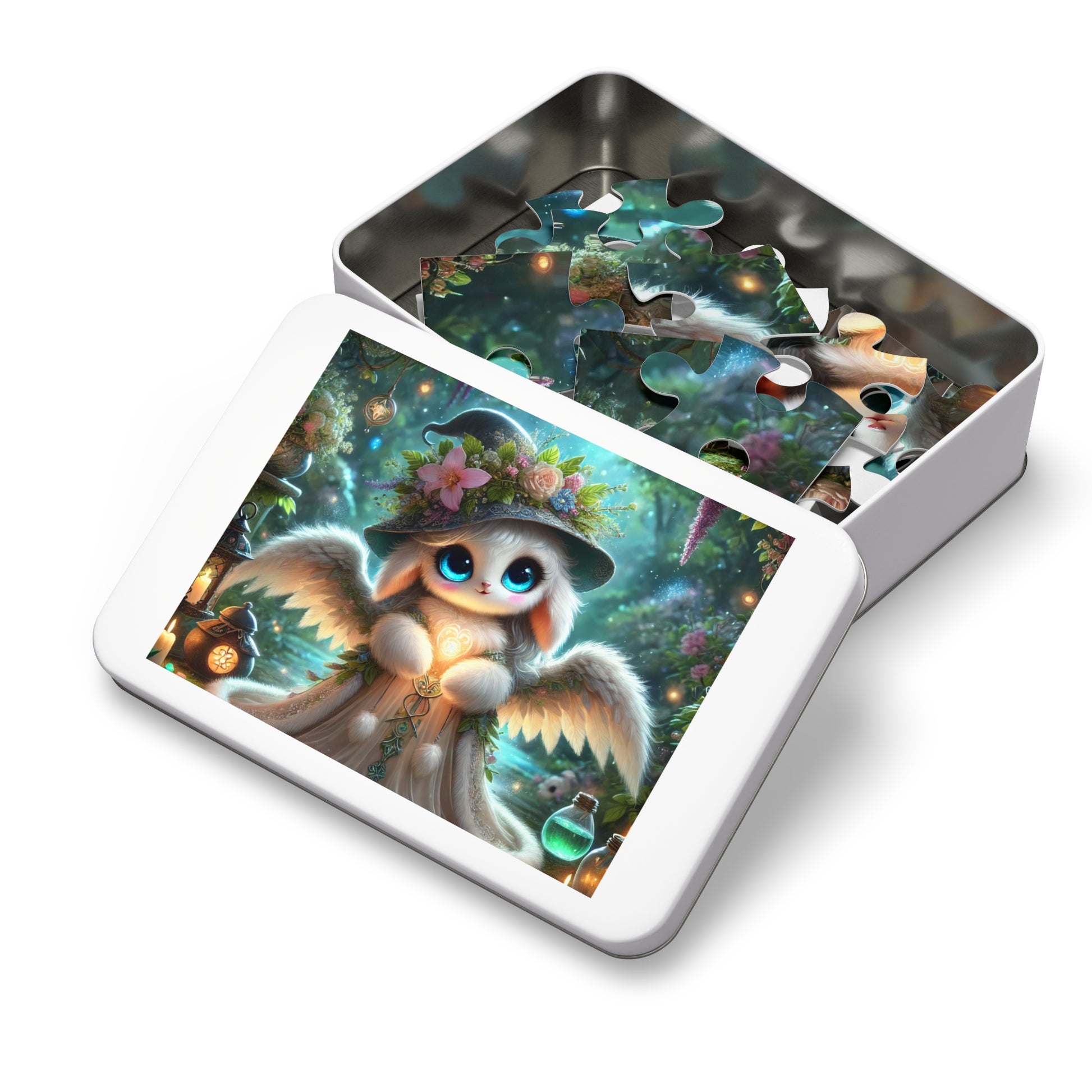 .: This custom puzzle comes in a white metal tin box