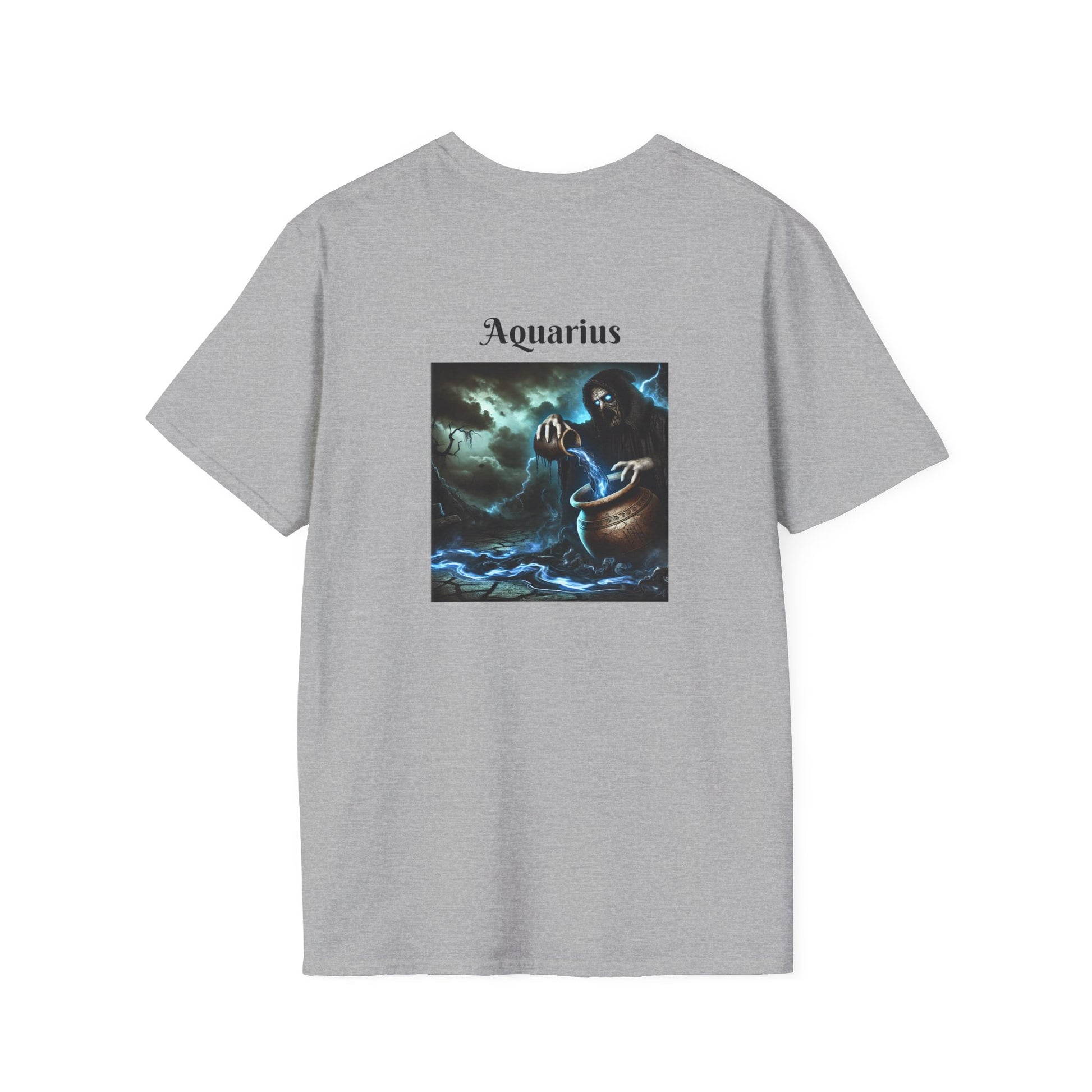 Dive into the enigmatic and unconventional spirit of Aquarius with this Halloween Gothic Zodiac Sign - Aquarius unisex softstyle T-shirt. This unique design features a mysterious figure pouring water from an ancient, cracked urn, with dark, swirling streams of liquid flowing beneath. Gothic details such as glowing eyes, misty patterns, and a shadowy atmosphere capture the essence of Aquarius, blending the sign’s creativity and rebellious nature with a haunting, spooky twist. This soft and lightweight T-shirt is perfect for astrology lovers who enjoy gothic fashion and want to express their sign in a bold, eerie way.