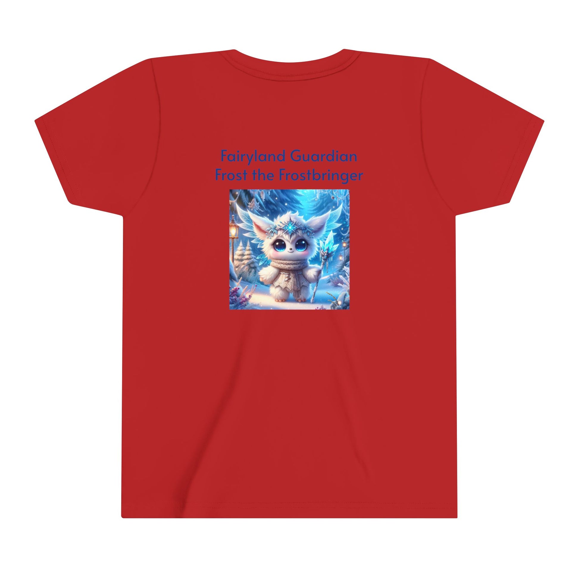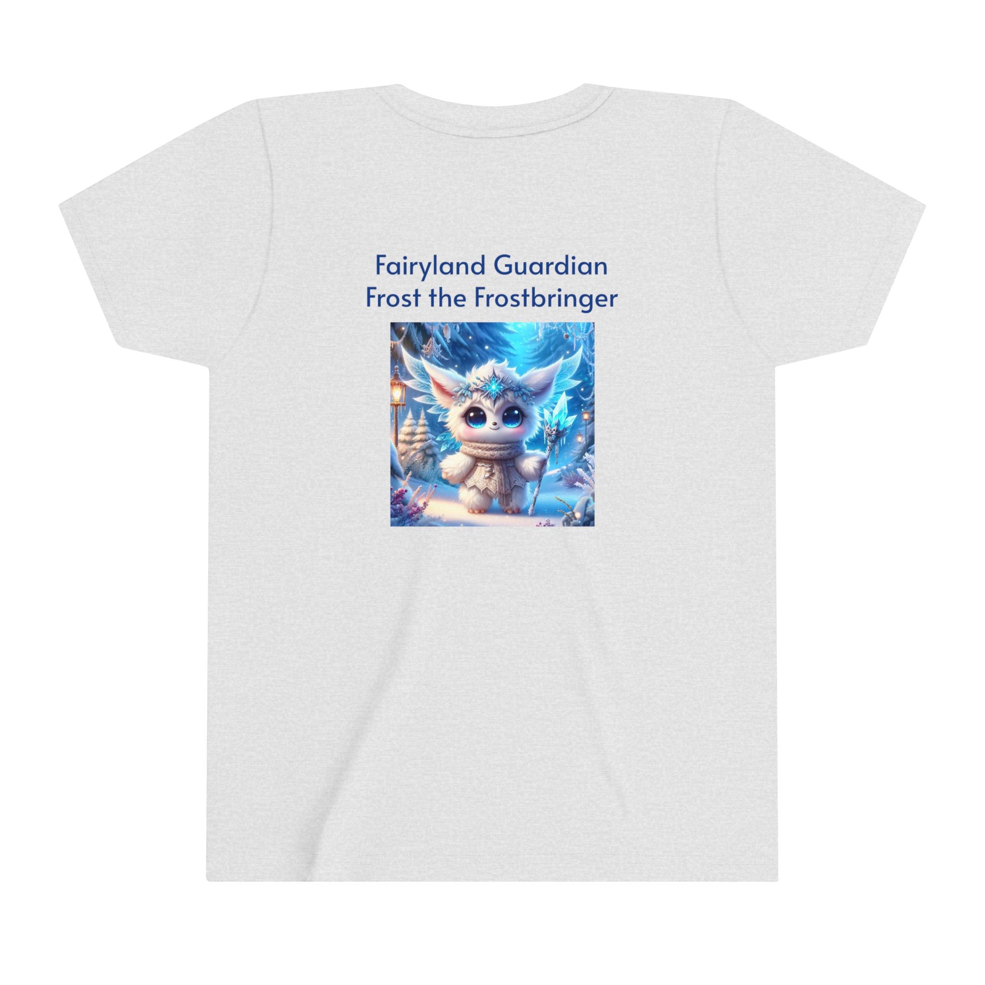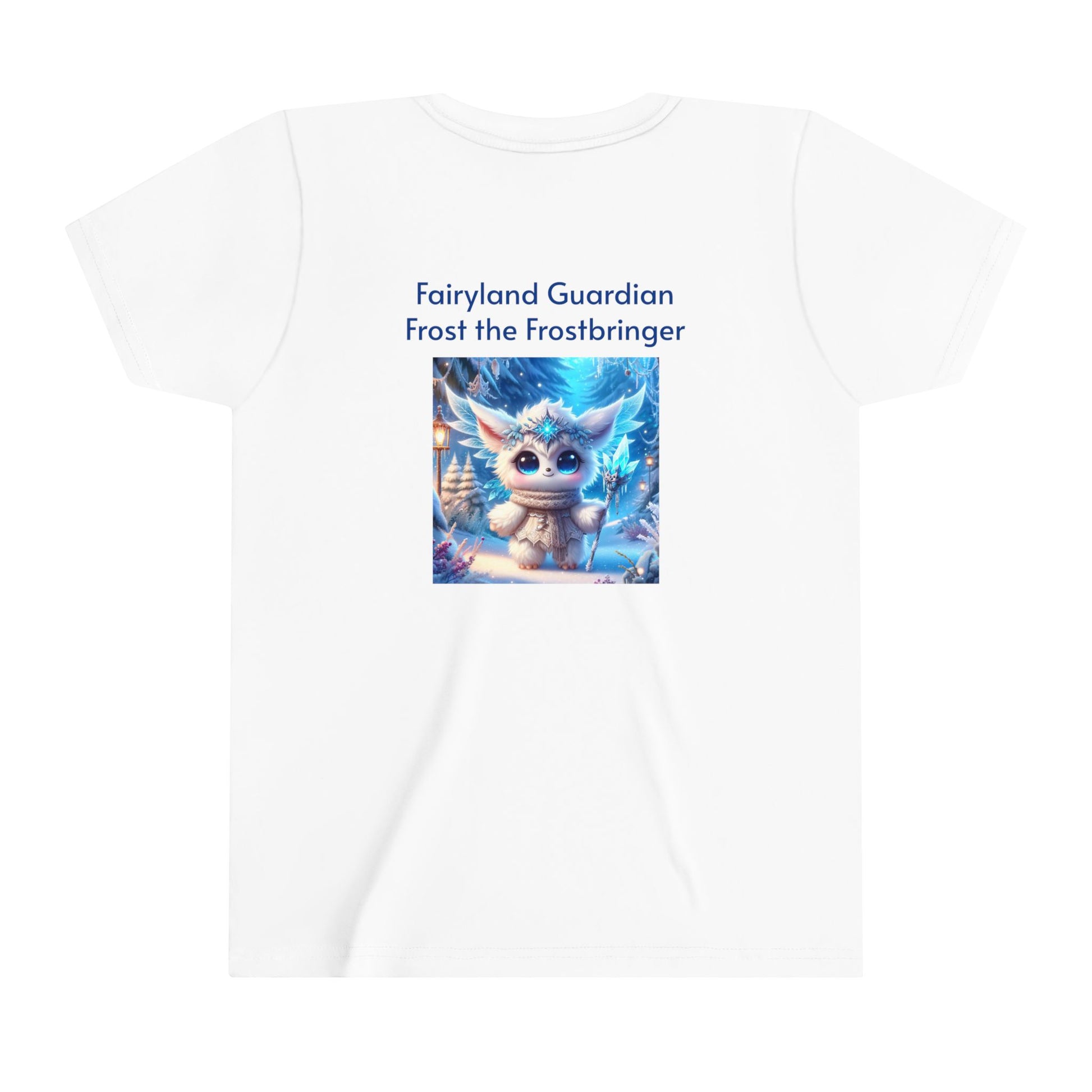 Let your child embrace the icy magic of Frost the Frostbringer, one of the beloved characters from the Fairyland Guardians, with this cool and comfortable Youth Short Sleeve Tee. Featuring a bold, detailed design of Frost surrounded by shimmering snowflakes and icy blue energy, this tee captures the frosty power and majestic aura of this magical guardian. Made from soft, breathable fabric, this tee is perfect for everyday adventures, offering style and comfort while inspiring imagination in young fans of fantasy and adventure.