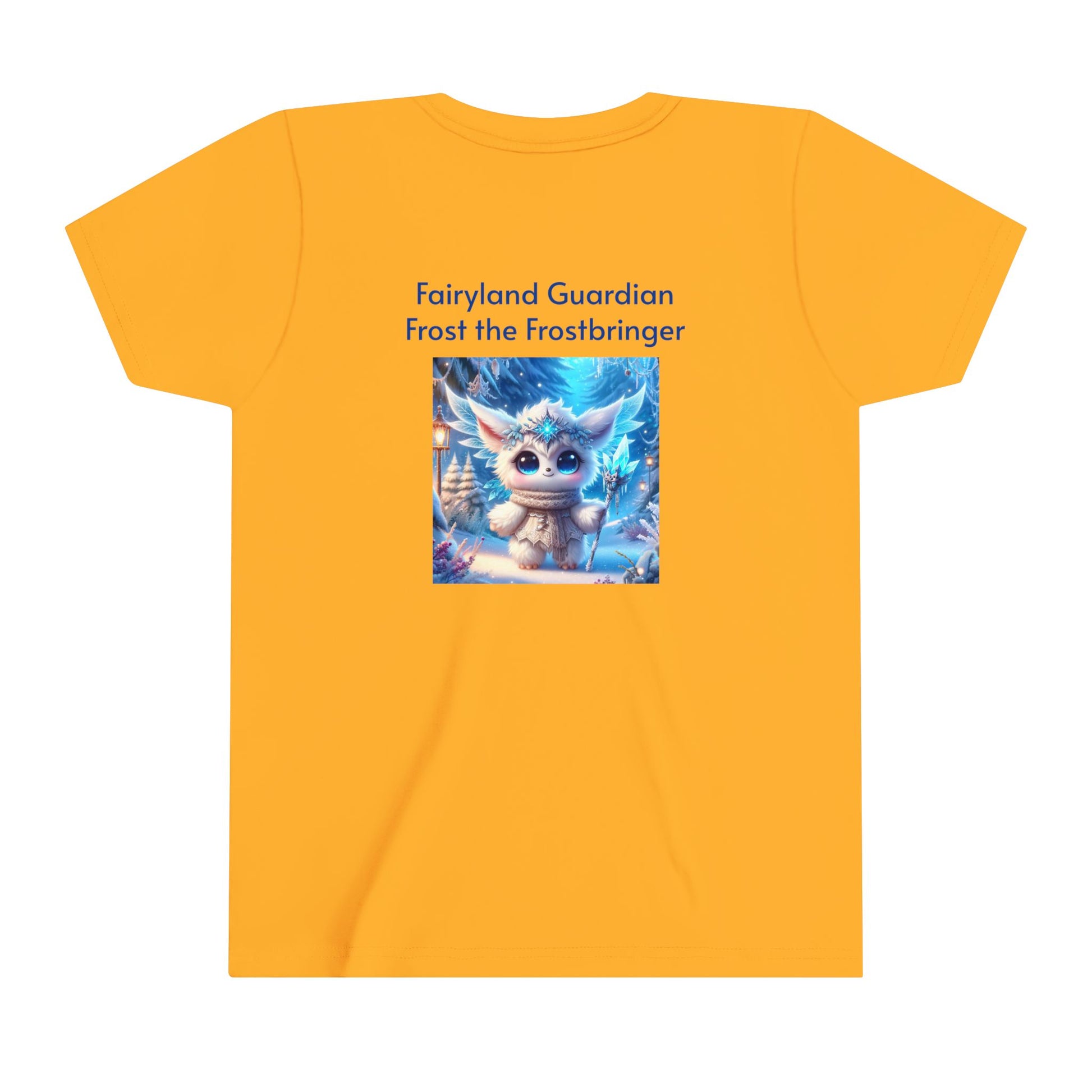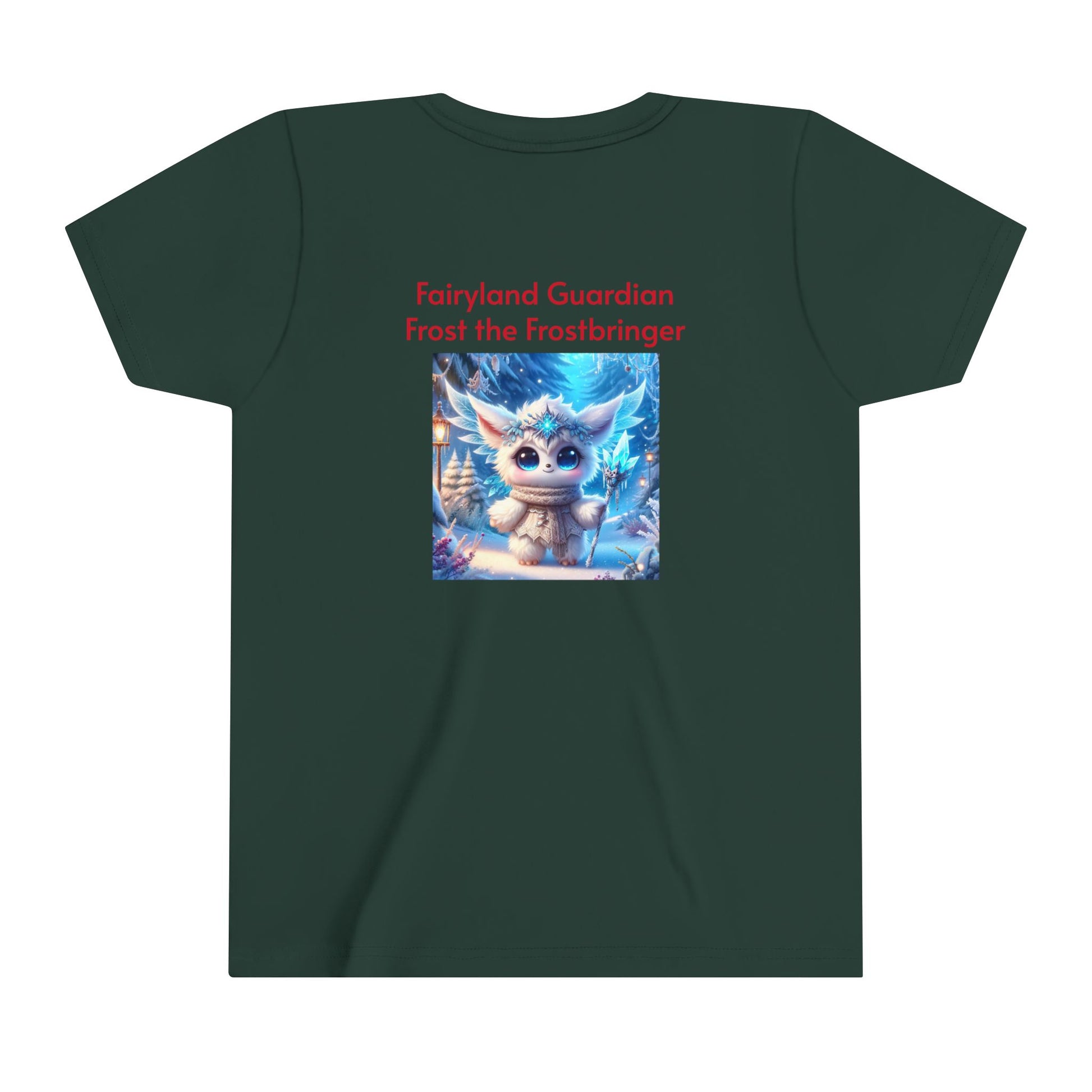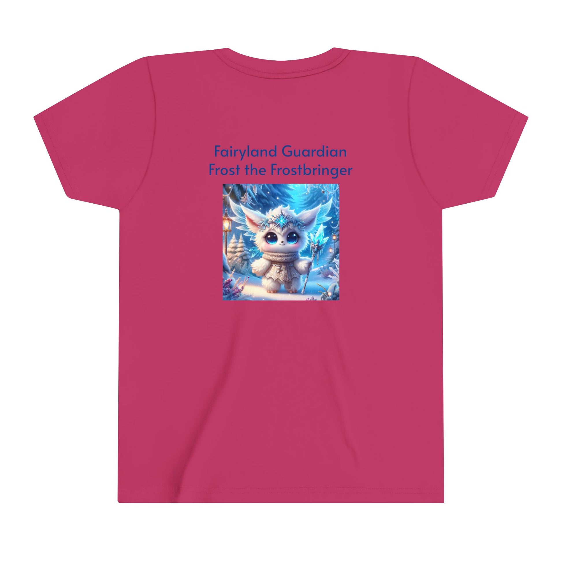 Let your child embrace the icy magic of Frost the Frostbringer, one of the beloved characters from the Fairyland Guardians, with this cool and comfortable Youth Short Sleeve Tee. Featuring a bold, detailed design of Frost surrounded by shimmering snowflakes and icy blue energy, this tee captures the frosty power and majestic aura of this magical guardian. Made from soft, breathable fabric, this tee is perfect for everyday adventures, offering style and comfort while inspiring imagination in young fans of fantasy and adventure.