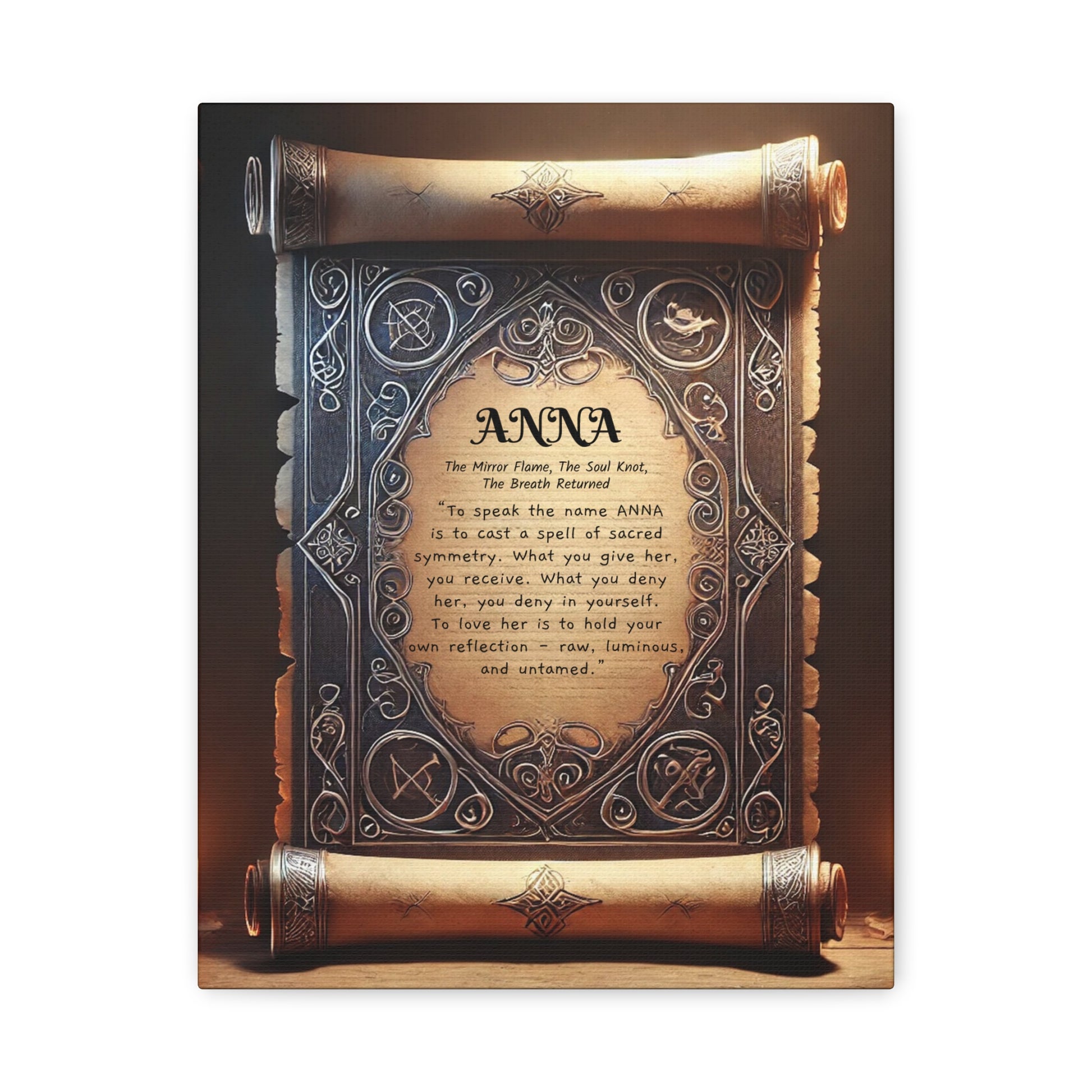 Transform your living space with this stunning Matte Canvas artwork. Perfect for adding a touch of personality and warmth to any room, More than a name, ANNA is a spell woven through time — a sacred echo of the stars and a flame hidden beneath still waters. This canvas artwork honors the ancient soul behind the name, a soul that walks between light and shadow, memory and mystery.